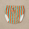 The lining of the Swim Nappy is a lightweight polyester mesh. There is a Drawstring closure and elastic waist and legs for a comfortable and secure fit to prevent leaks