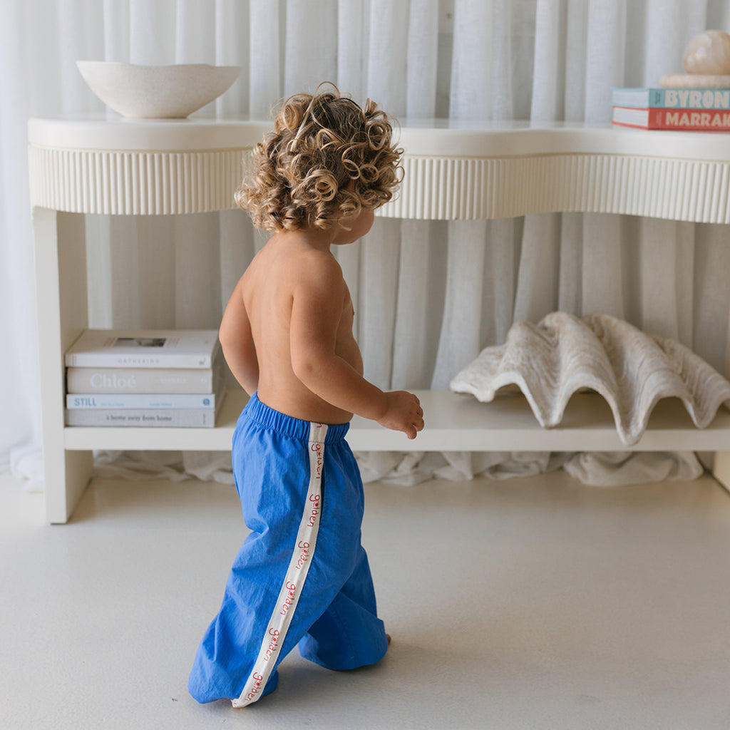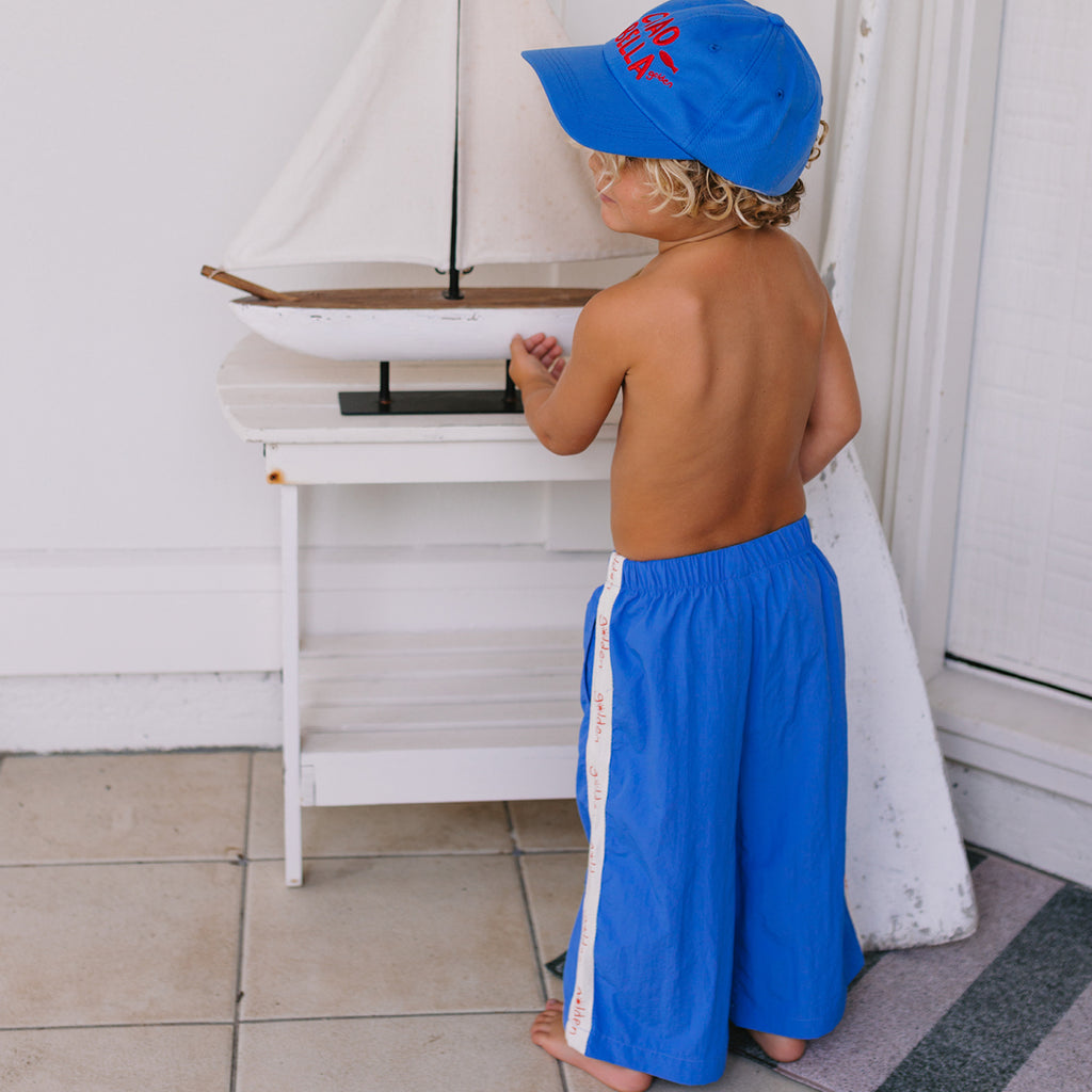 Sample size 3-4 years was used at the shoot. The waistband can be rolled to shorten the pants if need be.