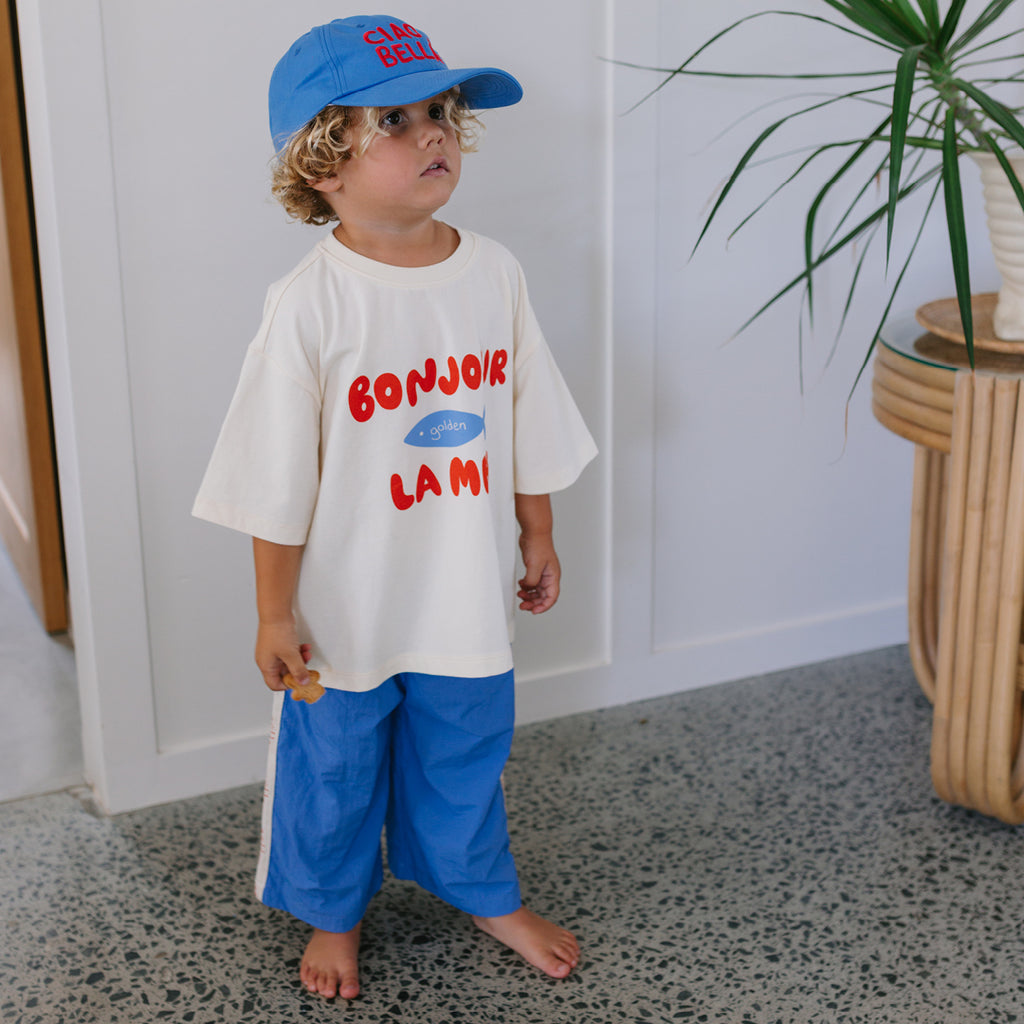 Shown here with the Bonjour La Mer tee on Remy