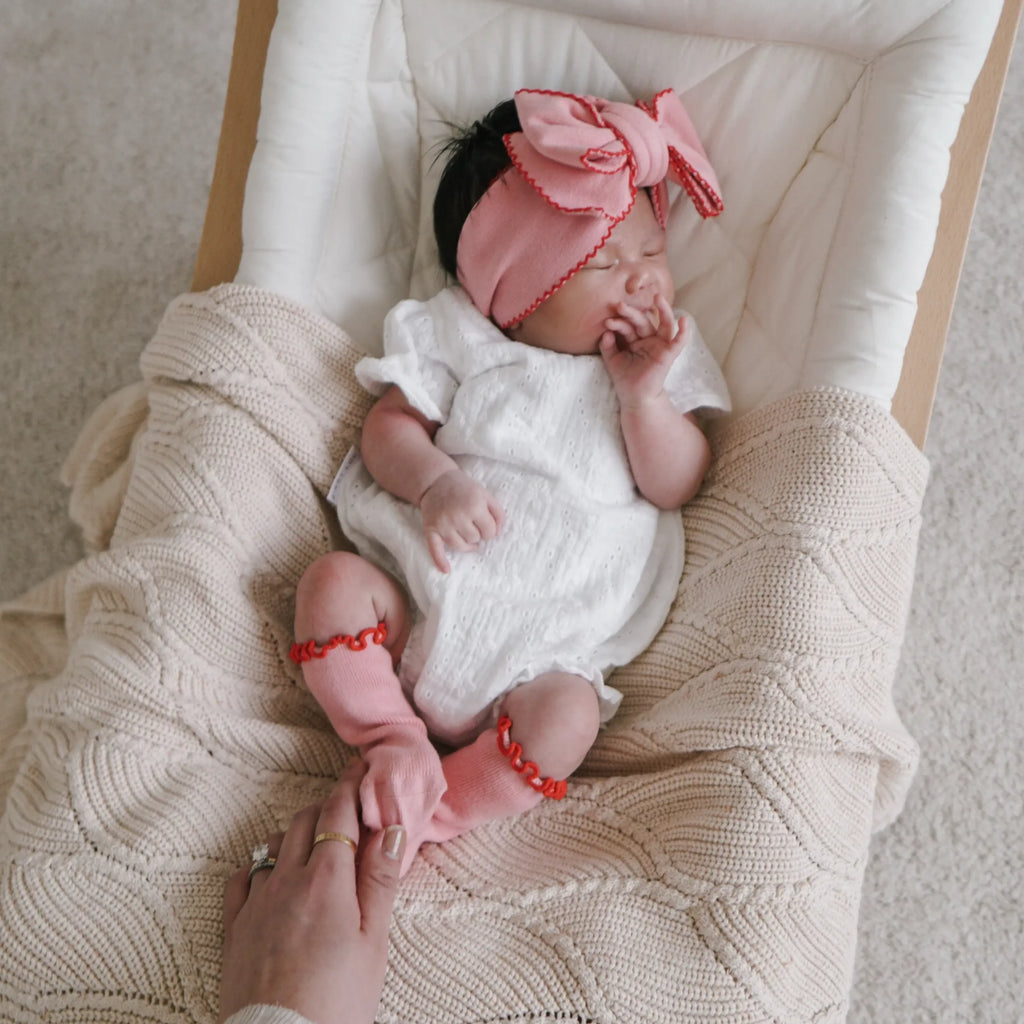 Beautiful thin knit and soft headband in the Elsa colour with contrast colour trim. Mix and match with items from the Christmas Collection.