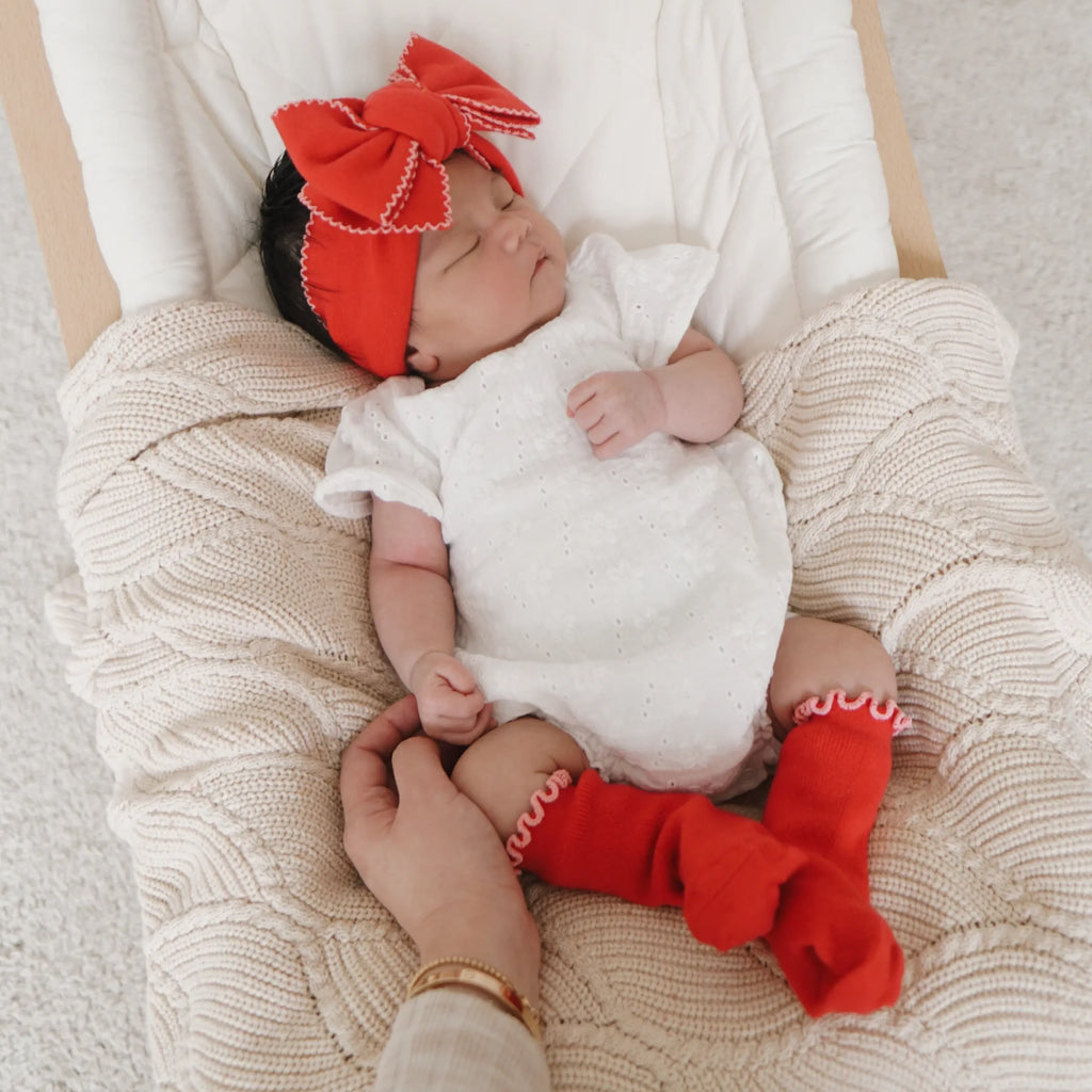 Beautiful soft knitted headband in the Scarlet colour with contrast colour trim. Mix and match with items from the Christmas Collection.