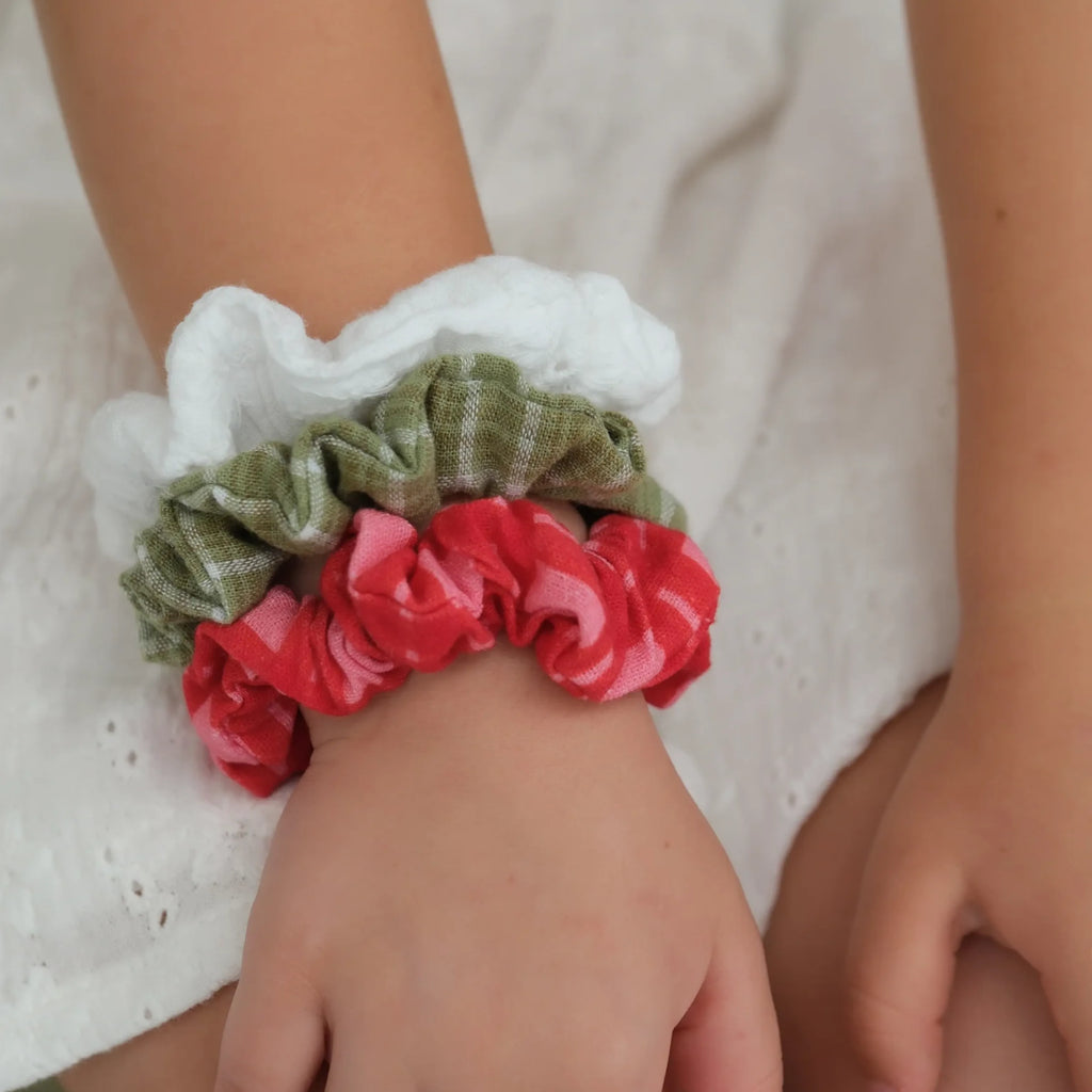 Lightweight cotton scrunchies in the Laurel fabric. Mix and match with the Christmas Collection.